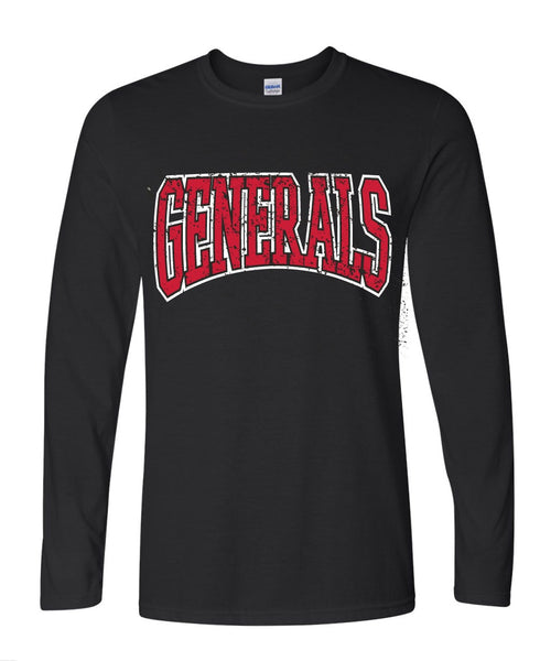 Black Distressed Varsity Generals Long Sleeve Tee- RTS (1- YM, 1- AM)