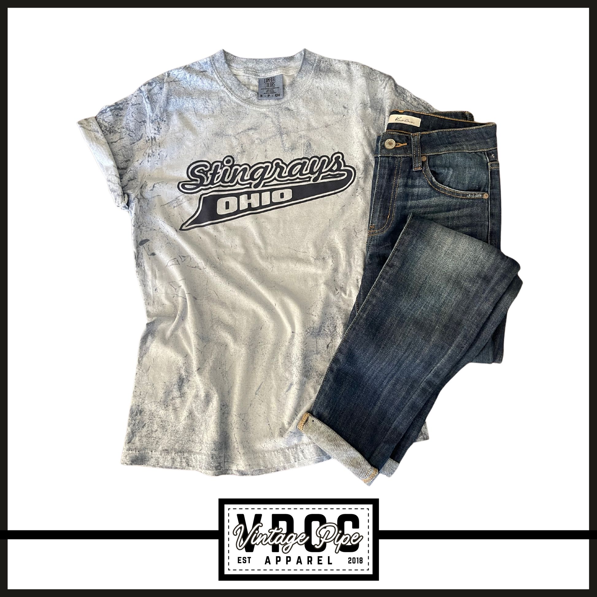 1745- Comfort Color Blast Script Stingrays Tees (Unisex) (Youth & Adult)