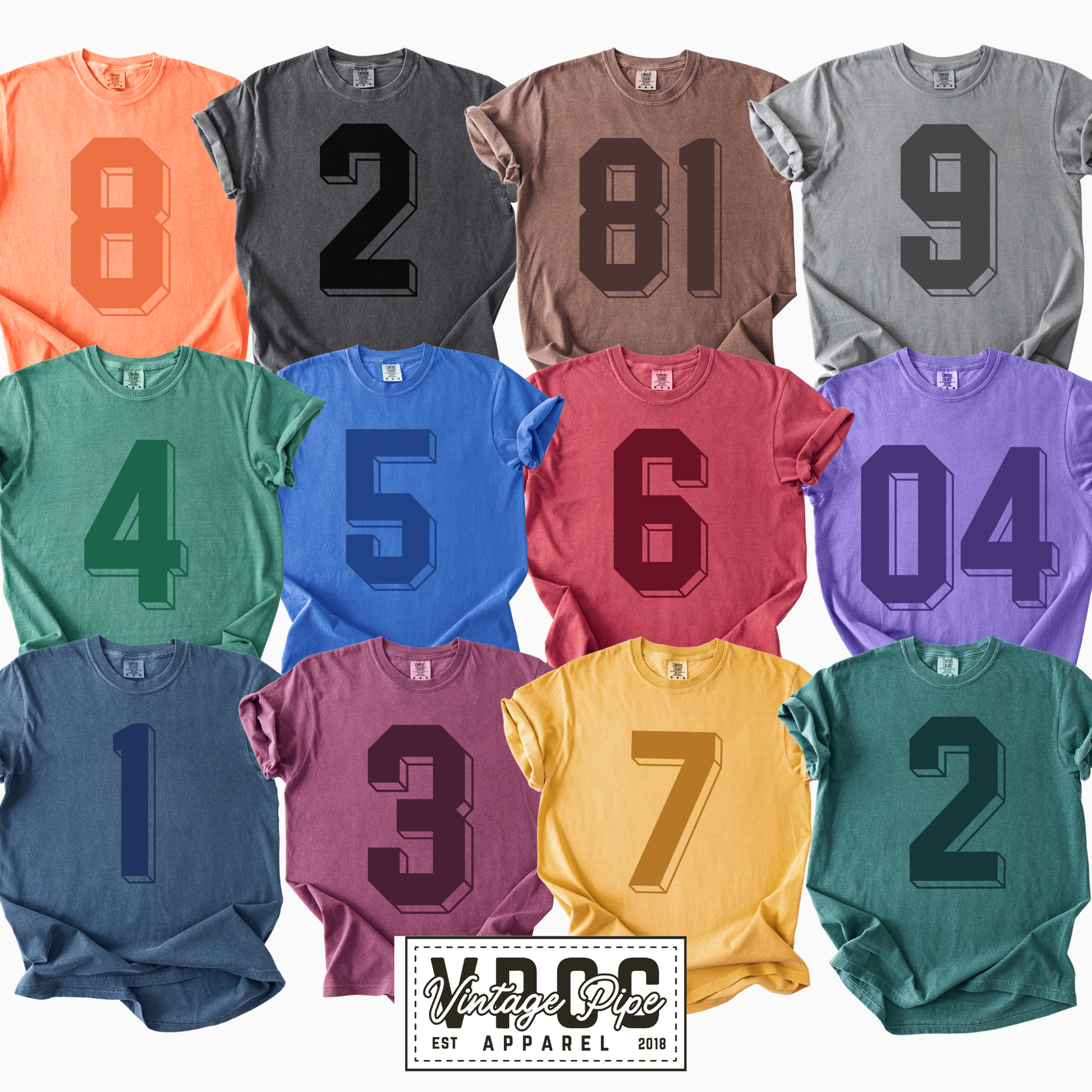 CUSTOM DROP SHADOW NUMBER TONE ON TONE TANKS, TEES AND SWEATSHIRTS